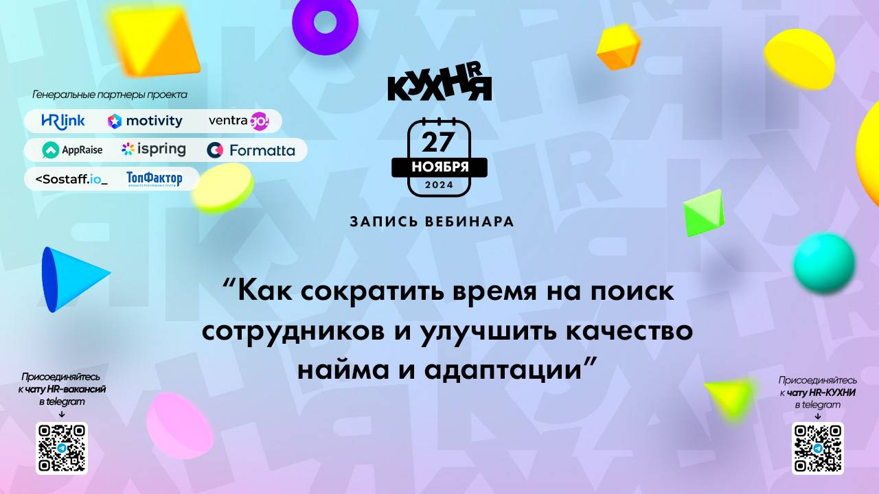 Присоединяйтесь к чатам и каналам HR-КУХНИ в телеграм: - Основной чат HR-КУХНИ в телеграм - https://t.me/+tYgAH0PgPQVkOWIy - Канал HR вакансий в телеграм - https://t.me/+CMNAN2u1hjo3M2Ri - Канал HR-EVENTS в телеграм - https://t.me/hr_kitchen - Канал HR JOURNAL в телеграм - https://t.me/hrkitchenjournal Полезные ссылки: - Каталог HR решений - https://hrkitchen.ru/exhibition - График конференций, бесплатных вебинаров, а также бесплатные курсы – https://hrkitchen.ru/ - Стать спикером HR-КУХНИ - https://hrkitchen.ru/speakers - Подписаться на полезную e-mail рассылку от HR-КУХНИ (новости, гайды, чек-листы, подарки от партнеров) - https://hrkitchen.ru/subscribe