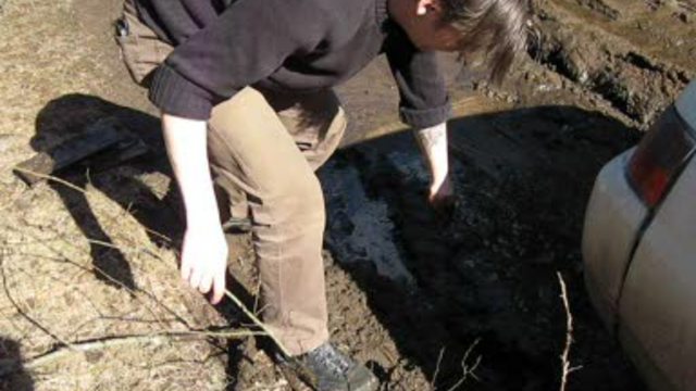 По локоть в дерьме, Слезает с рук кожа. Бубнит сам себе: "Машину не брошу!"