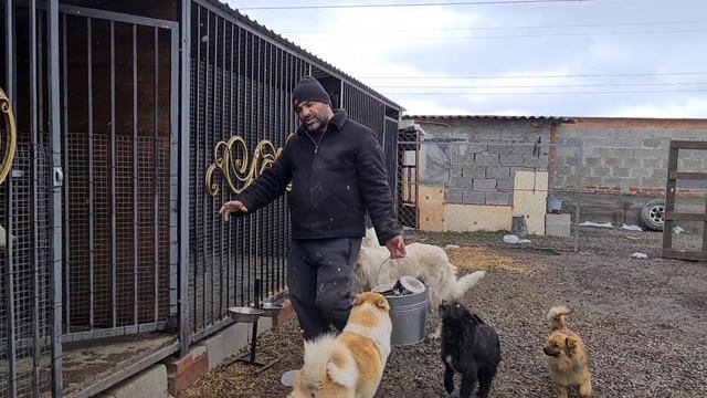 Спасённая собака готовится к стерилизации/Раздача еды
