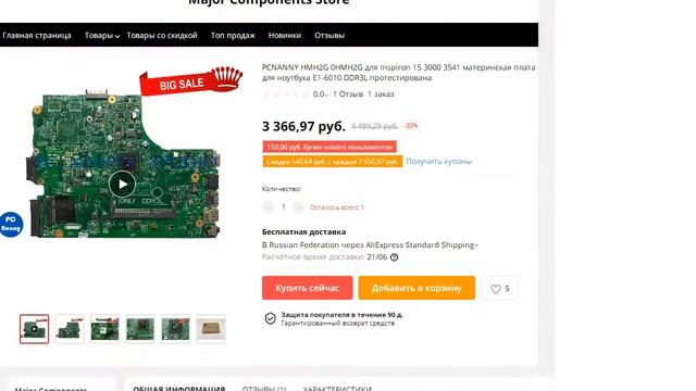 Ссылка на товар: http://got.by/4rbt86 Если ссылочка выше не работает, то Переходите сюда: http://ali.pub/3wdkwr Регистрируйтесь и верните до 70% с онлайн покупок: http://alturl.com/g9oek PCNANNY HMH2G 0HMH2G для Inspiron 15 3000 3541 материнская плата для ноутбука E1-6010 DDR3L протестирована