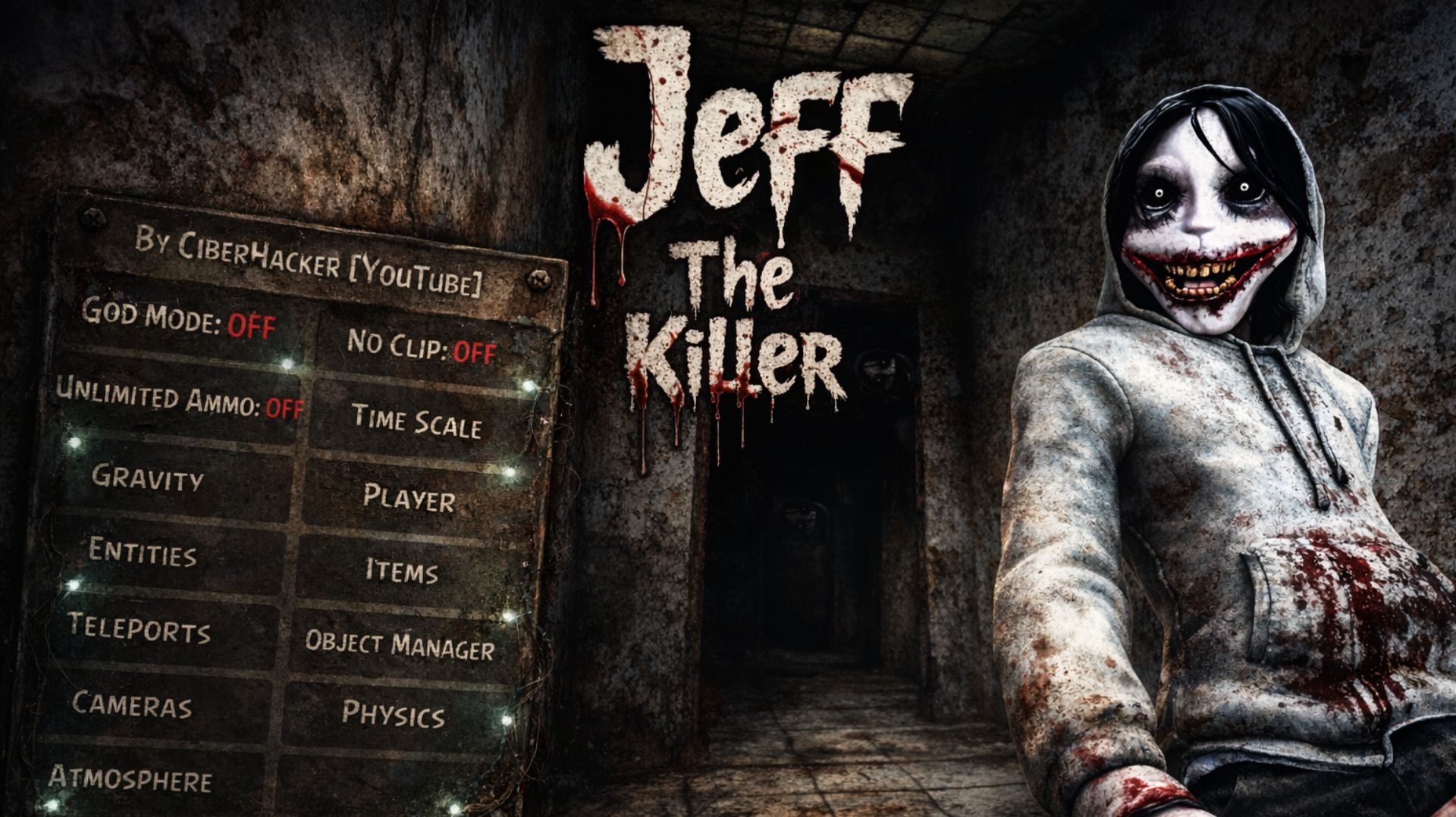 Fictional horror game gameplay — all characters are supernatural monsters Jeff The Killer 1.4.7 ❗ Mod Features ❗ ✅ God Mode ✅ No Clip ✅ Unlimited Ammo ✅ Time/Gravity Control Player ✅ Coords, Scale, Speed, No Clip Speed Enemies ✅ Size, Stop, Kill, Clone, ESP, Camera Items ✅ Select, Get Teleports ✅ Checkpoint, Teleport, Where to Objects ✅ Select, Destroy, Clone, Size, Pos/Rot, ESP Cameras ✅ Create, Select, FOV, Clip Planes, Ortho, Pos/Rot Physics ✅ Add, Mass, Gravity, Kinematic Download Mod Link in the pinned comment