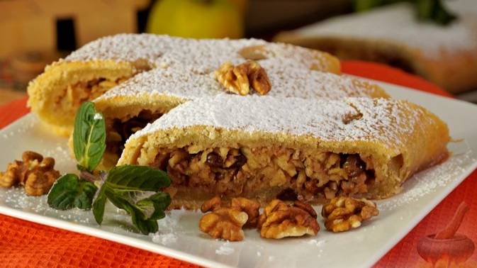Щедрая начинка в идеально хрустящем тесте. ШТРУДЕЛЬ С ЯБЛОКАМИ, ИЗЮМОМ И ОРЕХАМИ