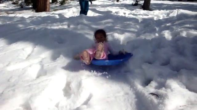 Stephanie's first snow saucer ride; she loved it!