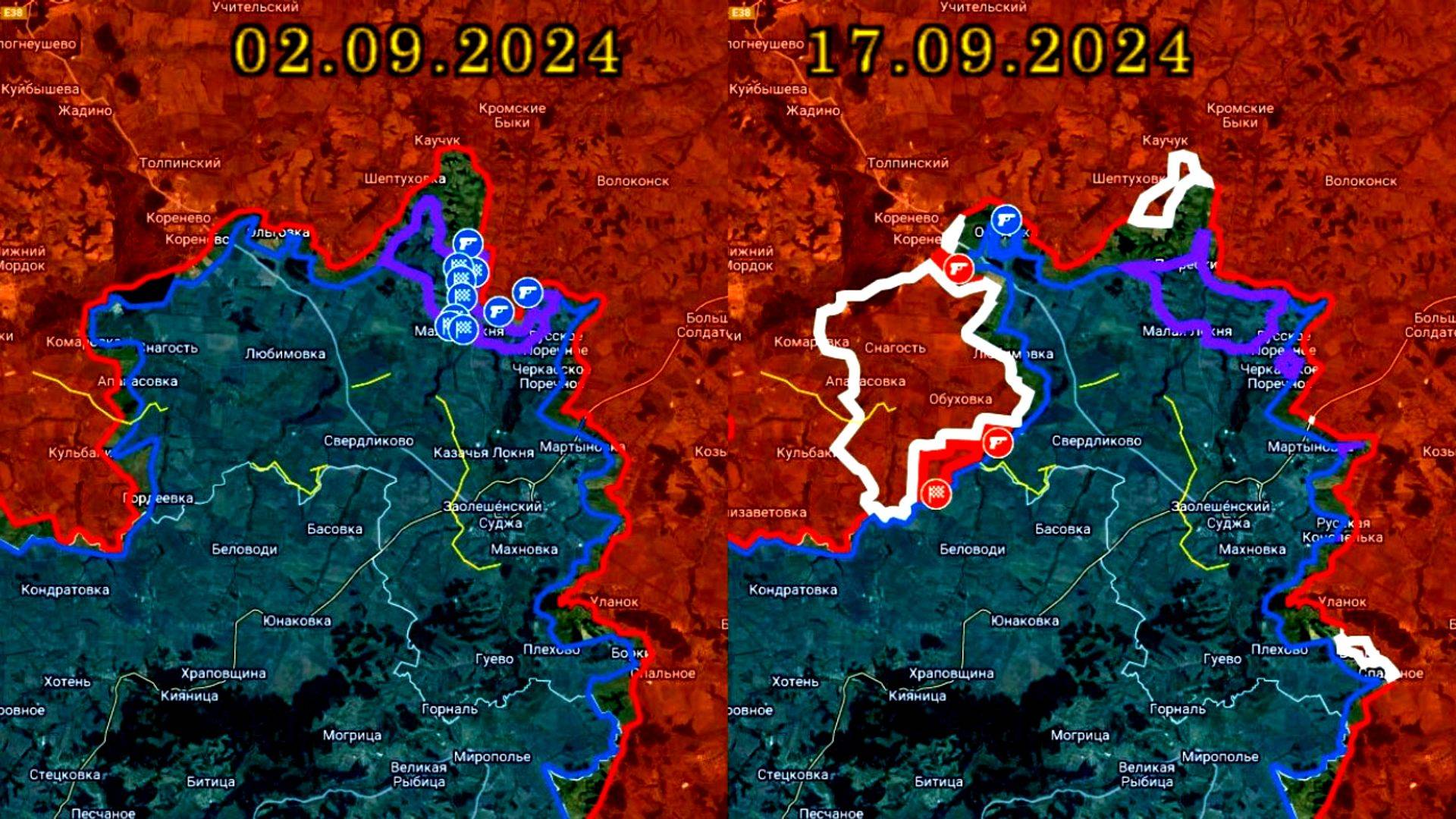Карта боевых действий в Курской области со 2 по 17 сентября 2024 года