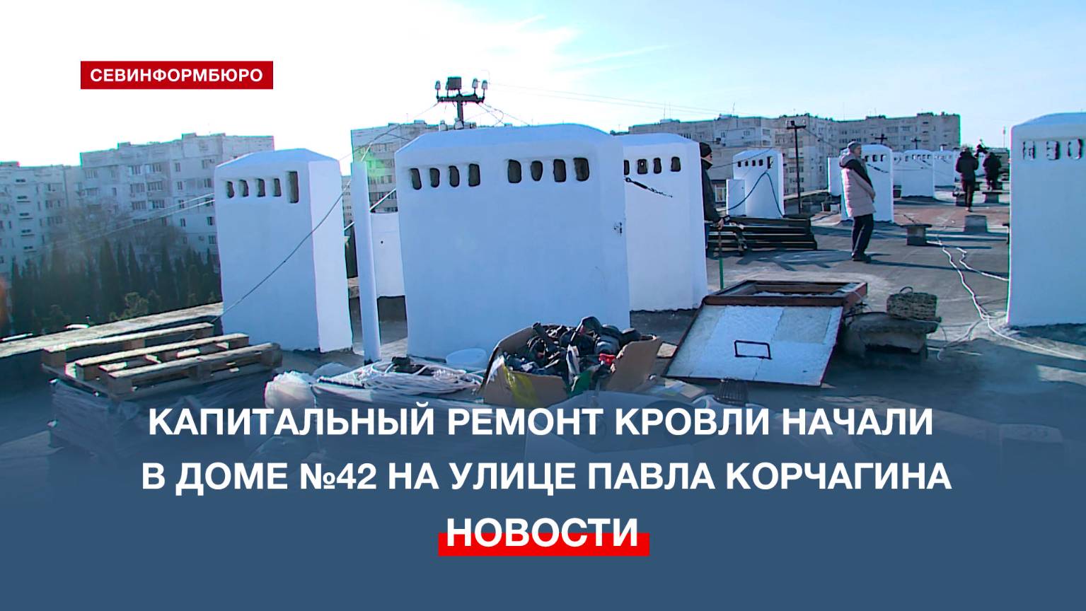 В доме №42 на улице Павла Корчагина начали капитальный ремонт крыши. Проектные работы завершили в первом месяце этого года. А 17 января Фонд содействия капитальному ремонту Севастополя передал объект в работу подрядчику – обществу с ограниченной ответственностью «СВ-строй». Подписывайтесь на наш Телеграм-канал: https://t.me/nts_novosti Смотрите новости Севастополя и Крыма на сайте НТС: http://nts-tv.com В нашей группе "ВКонтакте": https://vk.com/ntssevastopol На странице в "Одноклассниках": https://ok.ru/ntssevastopol