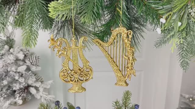 https://www.morozko-shop.ru/ Набор елочных украшений КЕЛЬТСКАЯ АРФА И ЗОЛОТАЯ ЛИРА, пластик, золотой, 13 см, TR20642-набор