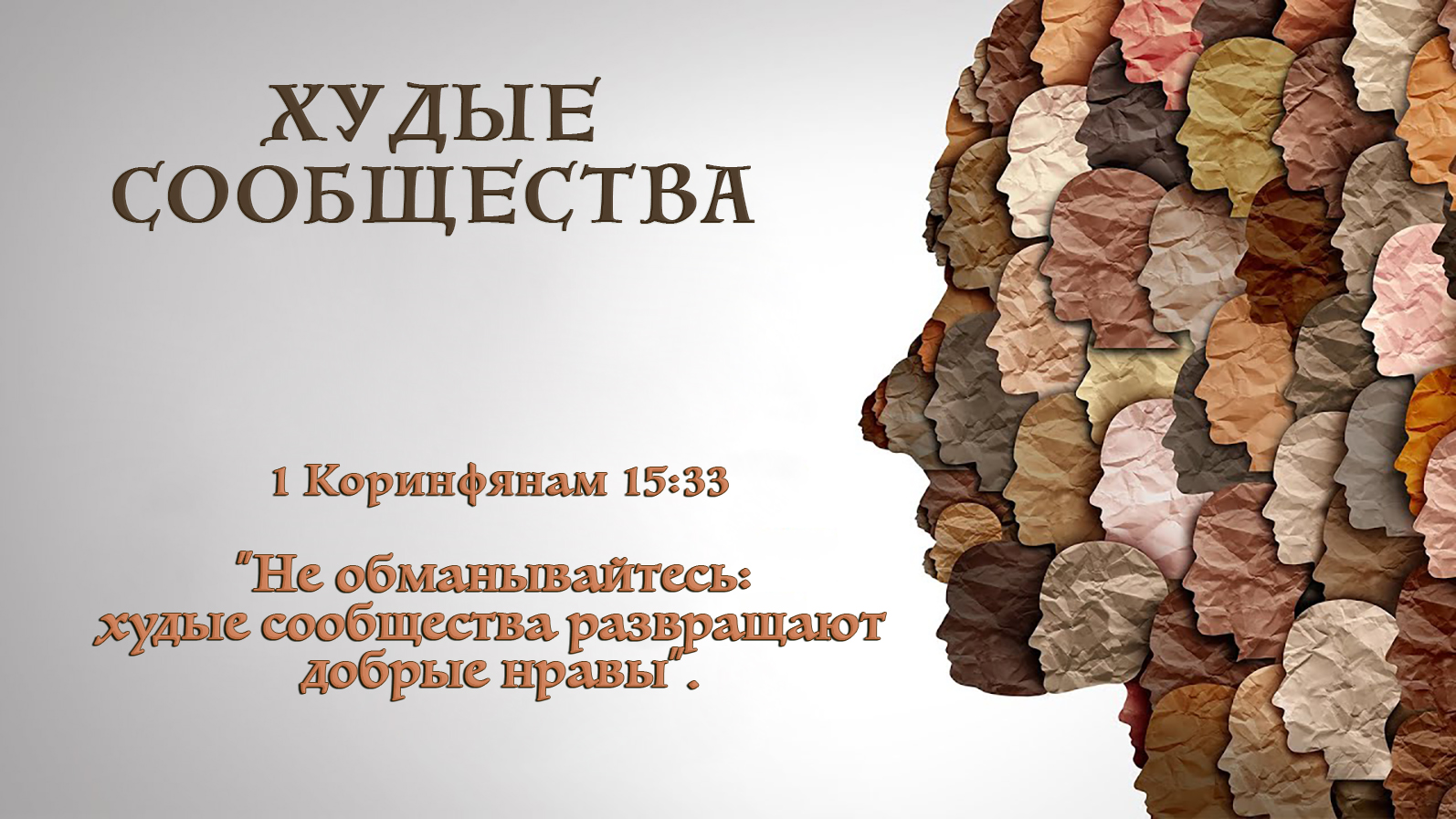 1 Коринфянам 15:33 "Не обманывайтесь: худые сообщества развращают добрые нравы".