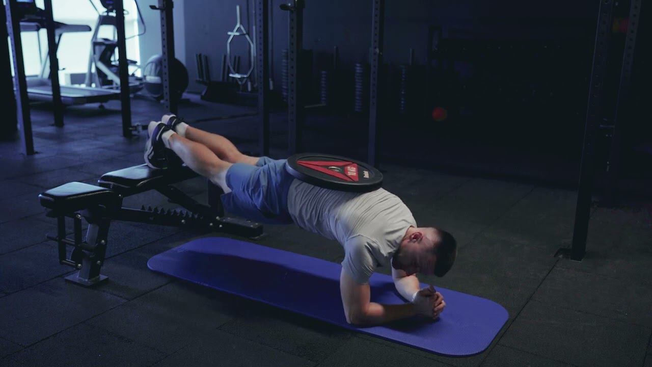 Планка с ногами на возвышенности на предплечьях с весом/ Forearm elevated weighted plank