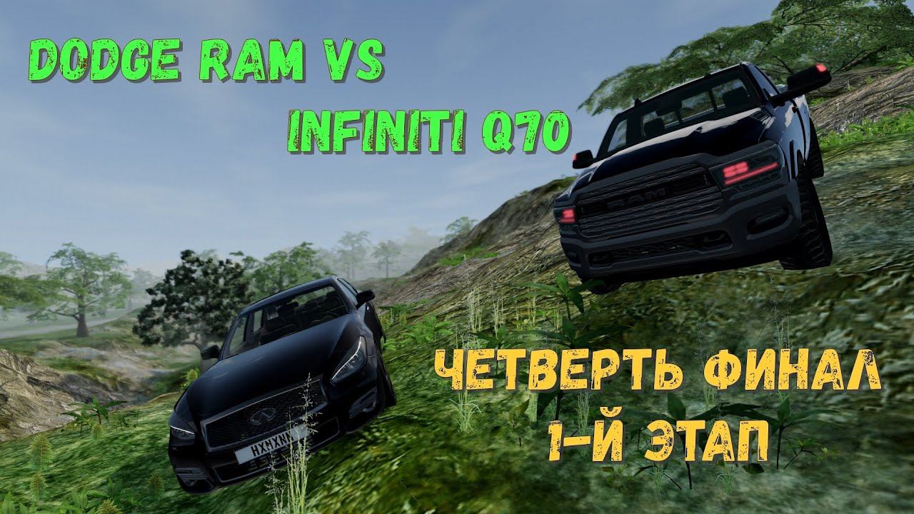 #beamngdrive Вот мы и добрались к четверть финалу По результатам жеребьевки первыми выходят на трек пара участников на Dodge RAM и Infiniti Q70. Это первый этап и состязаться будут участники в трех испытаниях У ручья, Горная дорога, Спуск с горы. Они преодолели первую часть соревнований и подошли ко второй, в полуфинал попадет только один из этой пары.