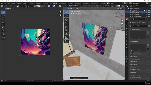 32. the artwork. RENDERING MODERN LIVING ROOM in Blender видео уроки