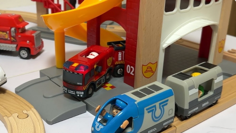 Видео для детей. Использую 5 игрушек , пожарную часть, железный переезд , водопад, красный мост . В середине видео происходит несчастный случай ! На место происшествия приехала пожарная машина и спасатели .