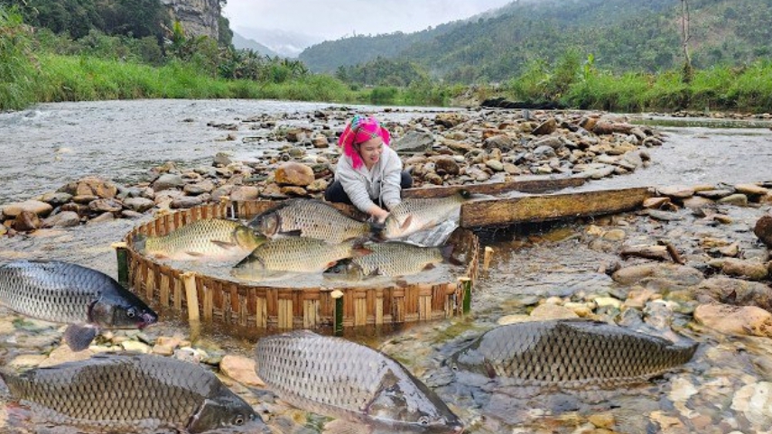 Используя уникальную рыболовную методику, девушка ловит 30кг рыбы. Рыбалка с Анной.