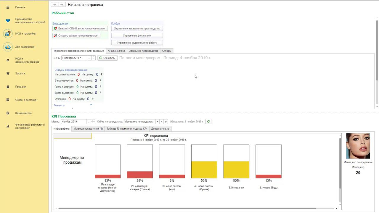 Управление стадиями документа «Заказ на производство» (Канбан) Управление Заданиями на работу (Канбан) Управление финансами (Канбан) Создание нескольких вариантов заказов на производство в одном документе Планируемый закуп у Поставщика по Заказам клиента Мониторинг цен - графическое отслеживание повышения или понижения цен закупки Автоматические скидки Покупателю от типа цены изделий как индивидуально, так и в зависимости от категории клиента (АВС классификация) Упрощение работы со скидками: скидки как на всю продукцию, так и на конкретный вид изделий Установка нужной суммы заказа на производство с пересчетом цен продукции пропорционально их веса цен KPI Персонала и матрица показателей
