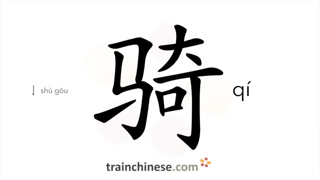 骑 (qí) to ride; sit on the back of; horse rider