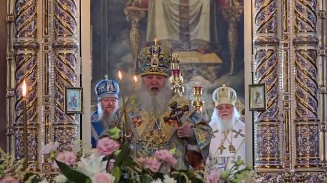 3 июня 2025 года на праздник Владимирской иконы Божией Матери в Задонском Рождество-Богородицком мужском монастыре, на престольный праздник во Владимирском соборе монастыря г. Задонска. Литургию сегодня 3 июня 2025 года совершили три архиерея: Высокопреосвященнейшие митрополиты Арсений и Никон и Преосвященнейший епископ Евфимий, им сослужили духовенство монастыря и гости священнослужители, молились на литургии братия монастыря, прихожане и поломники мужского монастыря.