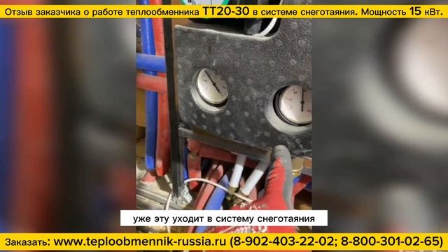 Видео отзыв о работе теплообменника ТТ20-40 в системе снеготаяния и антиобледенения, мощность 15 кВт