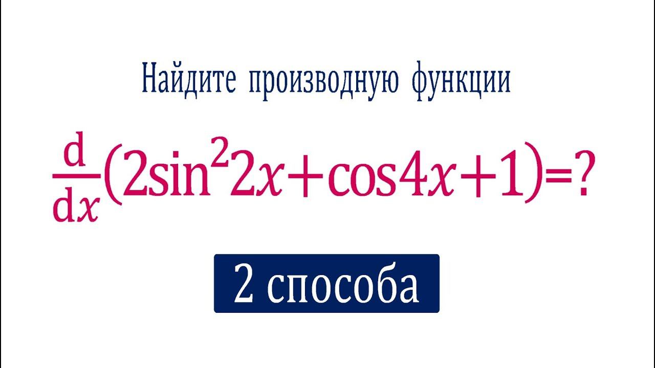 Найдите производную функции ➜ f(x)=2(sin2x)^2+cos4x+1 ➜ 2 способа