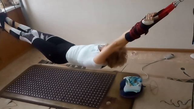 Продолное вытяжение. Применяются вертлюги для вращения. Открывается возможность дыхание в нижних отделах лёгких в районе нижних ребер. Рост увеличился на 2 см. Такое положение позволяет добиться более глубокой релаксации и большого времени виса. Возможна медитация с возникновением цветов радуги.