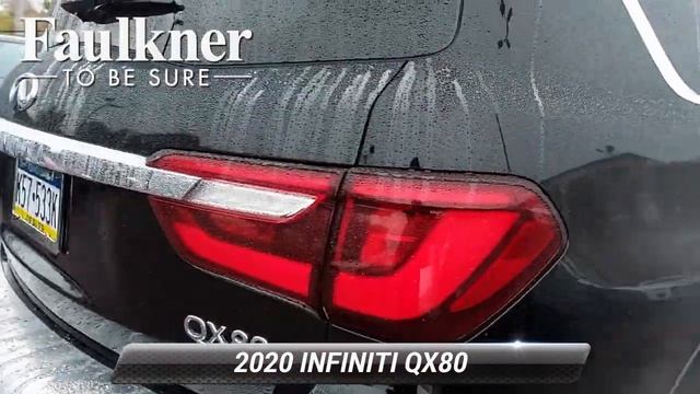 Used 2020 INFINITI QX80 LUXE, Willow Grove, PA L9251512 https://www.tobesure.com/all-inventory/vehicle/JN8AZ2NEXL9251512 For more information on this vehicle and our full inventory, call us at (267)-518-6200 Faulkner Alfa Romeo Maserati of Willow Grove 1520 Easton Road Willow Grove, PA 19090 Black Obsidian 2020 INFINITI QX80 LUXE AWD 7-Speed Automatic 5.6L V8 3rd row seats: split-bench, Apple CarPlay/Android Auto, Blind Spot Intervention (BSI), Blind Spot Warning, Heated front seats, Heated steering wheel, Intelligent Cruise Control, Lane Departure Prevention (LDP), Navigation system: INFINITI InTouch Navigation, Power Liftgate, Power moonroof, ProASSIST Package, Reclining 3rd row seat, Smart Rear View Mirror, Wheels: 20" x 8.0" Aluminum-Alloy. [RLVID:701:9dfc5ab716de17c0:05674e1c16c8f8bd:1]