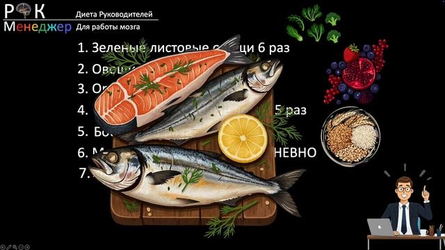 Для руководителей критически важно сохранять ясность мышления и высокую работоспособность, MIND‑диета предлагает решение. Сочетая принципы средиземноморской диеты и DASH, она целенаправленно защищает мозг от возрастных изменений, снижая риск нейродегенеративных заболеваний (например Альцгеймера) и поддерживает когнитивные функции. Более детально об образе жизни для поддержания когнитивных параметров головы можно посмотреть в уроке №6 по ссылке: rkmanager.ru