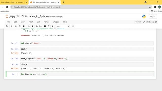 Dictionaries are used to store data values in key:value pairs It is a collection which is ordered Dictionaries are changeable They do not allow duplicates Data Strucutures in Python Python tutorial for beginners in English Python tutorial for beginners python for machine learning and data science Coursera plus - with Coursera plus, you will have unlimited access to 7,000+ world-class courses, hands-on projects, and job-ready certificate programs—all included in your subscription including popular Professional Certificates from Google and Meta : https://imp.i384100.net/Or95Yn Data Science Path: 1. Data Science Math skills - Duke University: https://imp.i384100.net/3e9Okd 2. Inferential Statistics - Duke University: https://imp.i384100.net/4PrKao 3. IBM Data Analyst: https://imp.i384100.net/NkQPG2 4. Python for Everybody: https://imp.i384100.net/y2eLZW 5. Data Science Specialization - Johns Hopkins University: https://imp.i384100.net/9gM2D0 6. IBM Data Science: https://imp.i384100.net/LXxgBL 7. Machine Learning Specialization: https://imp.i384100.net/NkQPJv 8. Deep Learning Specialization: https://imp.i384100.net/Kjq9GA 9. MLOps Specialization: https://imp.i384100.net/q4ENvj 10. DeepLearning.AI TensorFlow Developer: https://imp.i384100.net/9gMQZ0 11. TensorFlow Advanced Techniques: https://imp.i384100.net/rQzby5 13. TensorFlow Data & Deployment Specialization: https://imp.i384100.net/PyrkgX 14. Natural Language Processing Specialization: https://imp.i384100.net/k0abvn 15. AWS Fundamentals: https://imp.i384100.net/eKrB2D 16. Practical Data Science on AWS: https://imp.i384100.net/q4ENv5 Get certified from Google: 1. Google Data Analytics: https://imp.i384100.net/xk2bvA 2. Google Business Intelligence: https://imp.i384100.net/QyNedP 3. Google Advanced Data Analytics: https://imp.i384100.net/rQzbNQ Get certified from Meta: Meta Database Engineer: https://imp.i384100.net/jrn26e Disclosure: I may receive a commission if you click on and purchase from one of the links above.