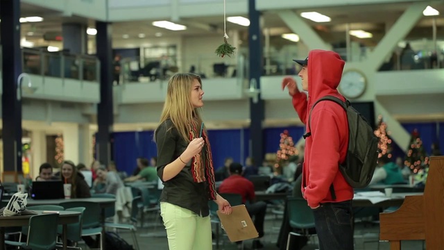 Раньше существовал обычай: если девушка стоит под веткой омелы (рождественское украшение), то она не вправе отказать в поцелуе ни одному пожелавшему его. Считается, что такой поцелуй приносит вечную любовь. Американские студенты под видом невинного опроса решили проверить, работает ли эта традиция в наши дни.