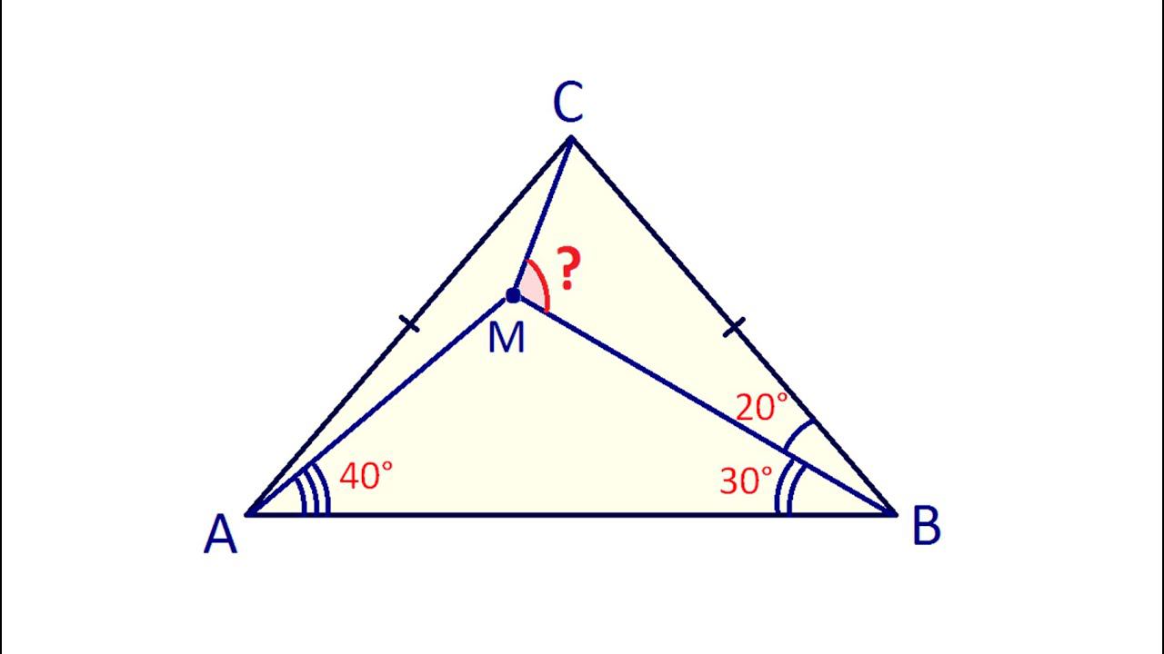 Внутри равнобедренного треугольника ABC с основанием AB взята точка M такая, что угол MBC=20°, угол MBA=30° и угол MAB=40°. Найдите угол BMC. Telegram: https://t.me/volkov_telegram Мой Дзен: https://zen.yandex.ru/valeryvolkov Telegram 2: https://t.me/zhena_muzha_uchit Группа ВК: https://vk.com/volkovvalery Предыдущее видео: https://youtu.be/aqhnp3Jn9f8 Valery Volkov https://www.youtube.com/valeryvolkov Семейный Дзен: https://zen.yandex.ru/rinaval @arinablog наш семейный канал https://www.youtube.com/channel/UCktJn2SW0NzKaLkdfsYqnrg Instagram: https://www.instagram.com/volkovege/ Twitter: https://twitter.com/volkovege Почта: uroki64@mail.ru Поддержать: http://donationalerts.ru/r/valeryvolkov