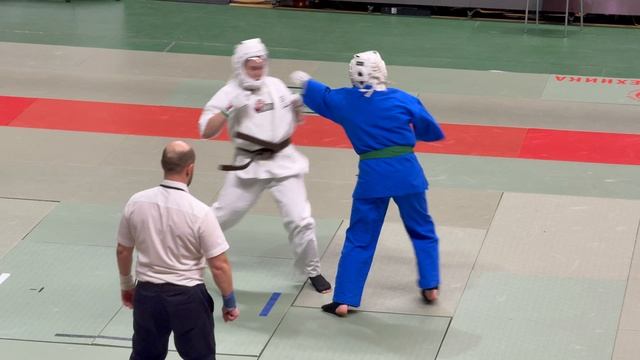 06.04.2025 в Москве прошли Всероссийские соревнования по кудо «Памяти павших бойцов спецподразделений ГРУ». Бой в абсолютной категории юниорки. В синем Дарина Алисултанова (Приморский край), в белом Юлия Губкова (г. Москва, СК «Прайд»).