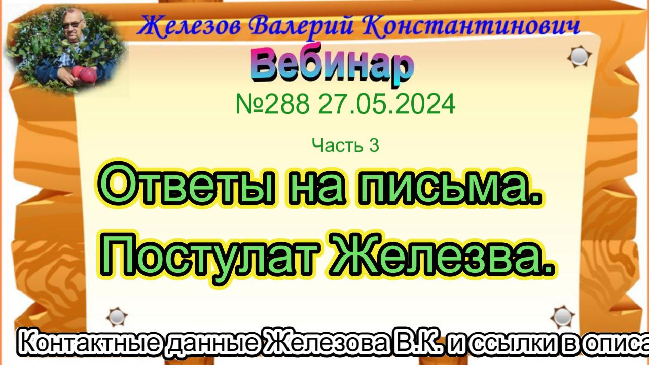 Железов Валерий. Вебинар 289. ч. 3. Ответы на письма. Постулат Железва.