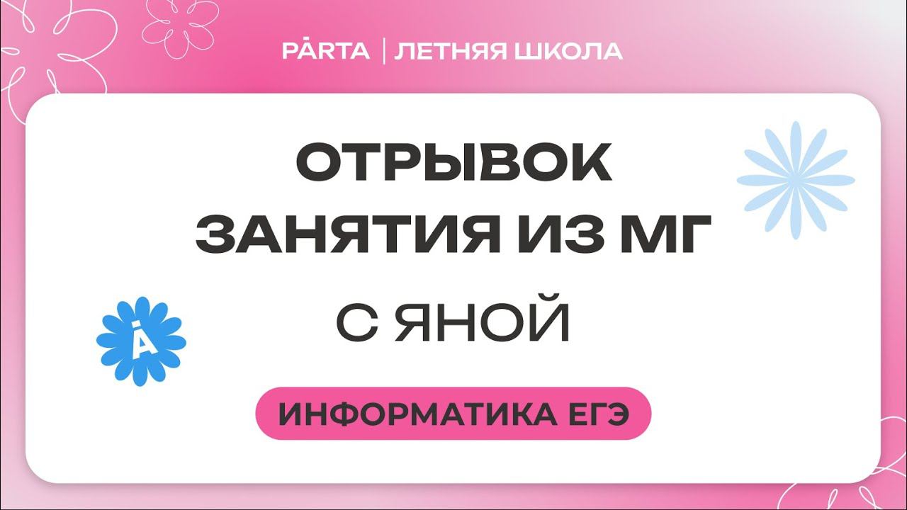 ✅ Хочешь начать подготовку? Переходи на нашу платформу и получай бесплатный урок https://vk.cc/cv3i3p Чтобы записаться на 4 предмета по цене 1 со скидкой 10% переходи по ссылке - https://vk.cc/cv4Nf1 Твой купон для скидки - "МАСТЕР" Меня зовут Яна Сабирова, я преподаватель информатики в онлайн-школе Parta! - Преподаю шестой год - Дипломированный специалист по информационной безопасности - Переводчик в сфере it-коммуникаций Социальные сети: Группа ВКонтакте по информатике https://vk.com/partainfo Телеграмм https://t.me/+jHE80atvtBg0NGEy #информатика #ЕГЭ2024