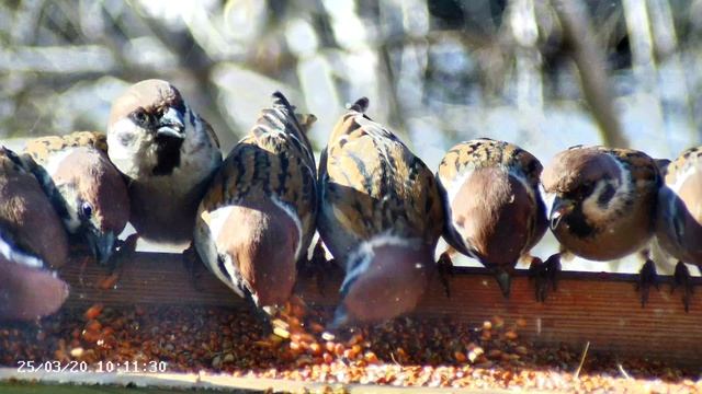 Воробьи в кормушке -