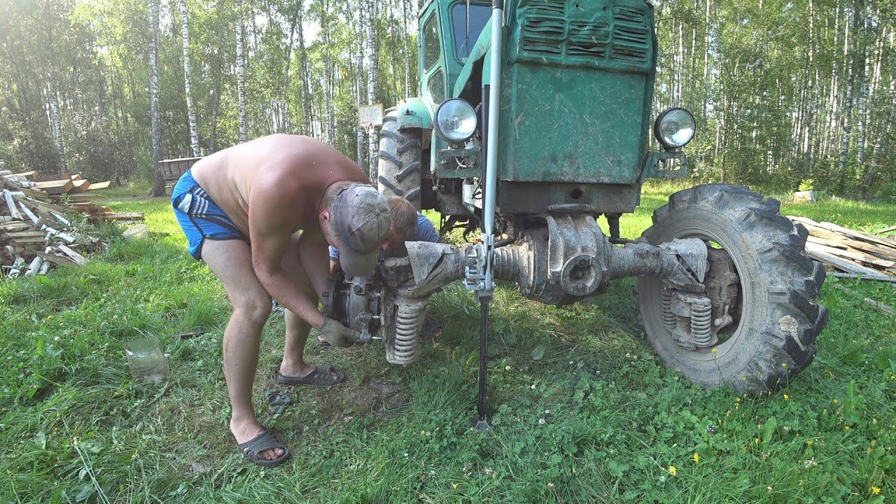 Лопнула бортовая на Т-40. Меняем.