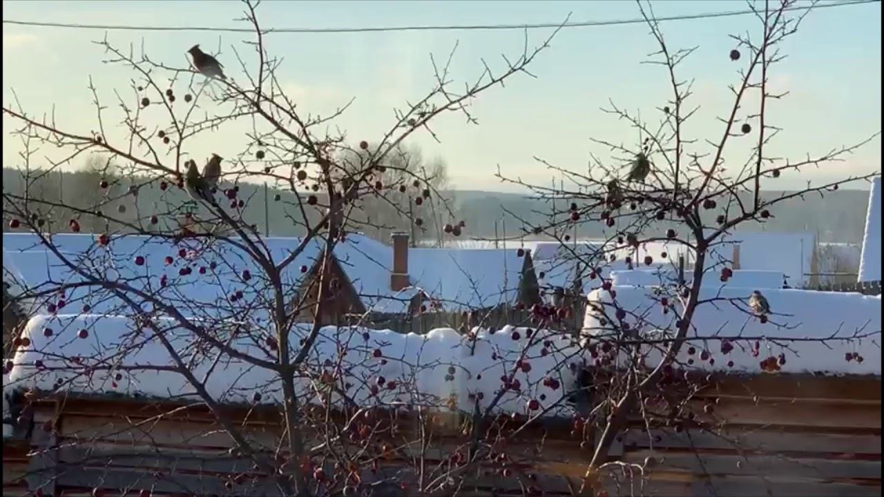 Яблочки специально для птиц оставил, и вот - прилетели. Чувствую, всю зиму будут у нас лакомиться. P.S. Закадровое чириканье и кукареканье взято из интернета, для атмосферы, так сказать.