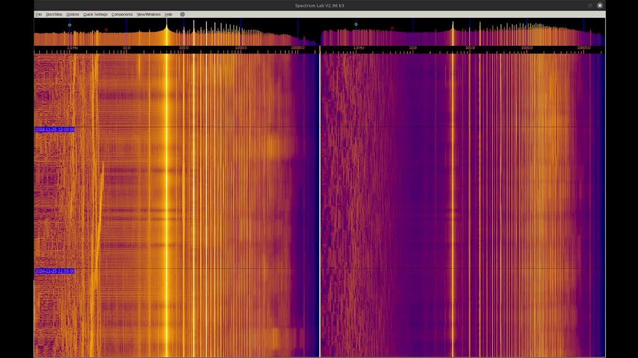 The left and right signals are taken from inductive sensors with ferromagnetic elements, but the left one is additionally connected to grounding on 2 stainless steel pins buried 1 m and spaced 1 m apart. You can see a large number of harmonics from the power supply and various artificial signals. Of interest are signals at frequencies below 50 Hz, where you can observe the operation of specialized equipment and communication signals of submarines and underground objects. Separately, it is worth considering signals in the region of 1-3 Hz on the left spectrum, which relate to the geomagnetic background, which is modulated by solar activity, They can be viewed in more detail in the video called “Signals from the Earth,” which are in the playlists below. The sound in the video is recorded in real time - a signal from sensors. О ПРОИСХОЖДЕНИИ ЧАСТОТНОЙ МОДУЛЯЦИИ СЕРПЕНТИННОЙ ЭМИССИИ https://youtu.be/bwWHggY1IVU?si=xAX1diRKI9MxQJ88&t=1740 Previous monitoring is in playlists: EMF monitor https://youtube.com/playlist?list=PLiRg2YCbXcwn41BHqADKVBep_TgVq6XUN Очень Низкая Частота ~ Very Low Frequency https://youtube.com/playlist?list=PLiRg2YCbXcwnp5DxM4PnSs7k_Rnypaqek SIGNALS IN THE GROUND https://youtube.com/playlist?list=PLiRg2YCbXcwl6f3Bf5arHbGSOCNE5U71O поддержать канал: 8-999-654-93-44