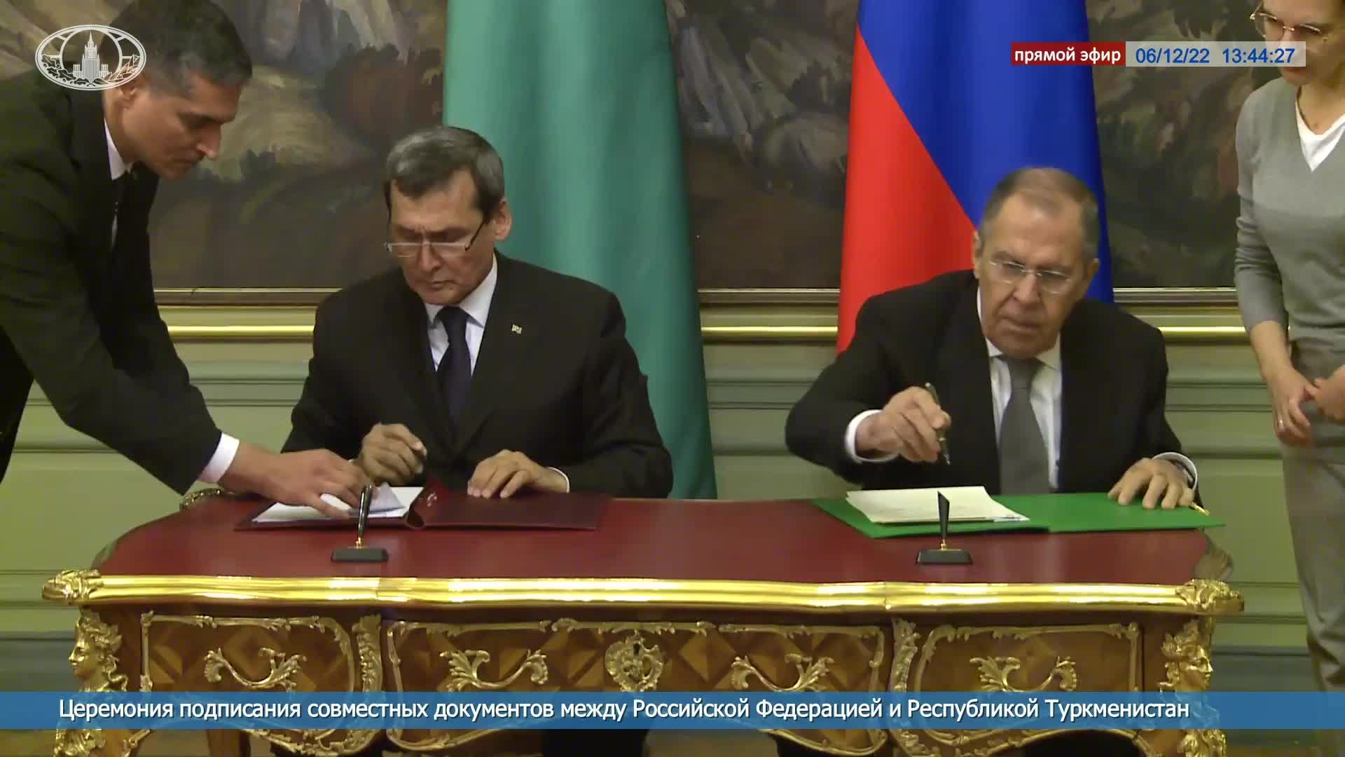 ? #ПрямойЭфир: Подписание документов С.В.Лавровым и Заместителем Председателя Кабинета министров, Министром иностранных дел Туркменистана Р.О.Мередовым по итогам переговоров в Москве ????