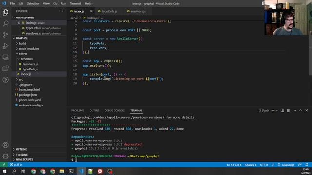 In this video we'll go over the beginning parts of grapql, the typedefs, as well as how to setup and use the Apollo Server and Apollo Sandbox for testing. 00:00 Intro: what is Graphql? 02:56 Apollo Server install 04:54 Creating the initial schema files 05:45 Typedefs part 1 06:54 Setting up the Apollo Server with Express 09:56 Typedefs part 2: What is a type? 11:33 The Query type 12:27 Using Apollo Sandbox to debug queries 15:06 Summary 15:42 Outro