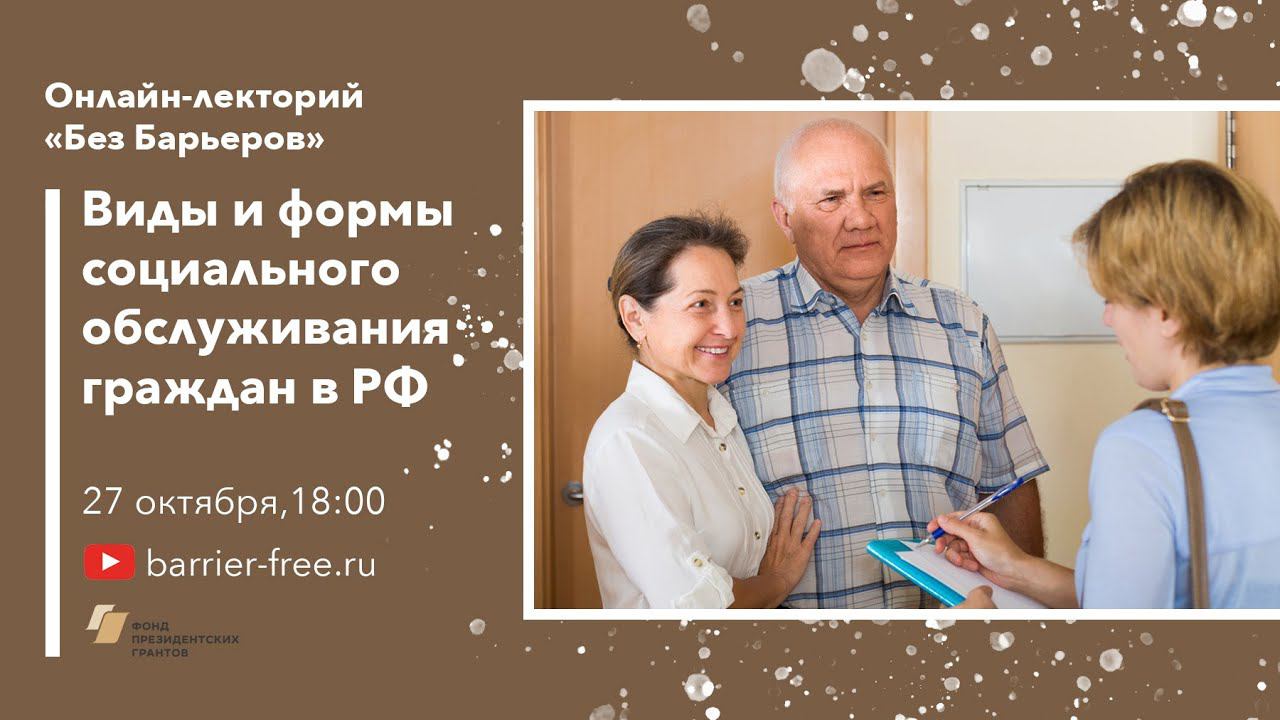Кто признается нуждающимся в социальном обслуживании? Как и на какой основе можно получить необходимые услуги? Где найти подходящего поставщика? На онлайн-лекции от 28 октября Андрей Раев отвечает на самые важные вопросы, касающиеся социального обслуживания граждан в Российской Федерации. Вебинар подготовлен юристами Регионального общественного фонда правовой защиты и поддержки инвалидов «Без Барьеров» http://barrier-free.ru при поддержке Фонда Президентских грантов, ГБУ Московского дома общественных организаций и Фонда Потанина. Адрес: Варшавское шоссе д. 76, к.2 (по предварительной записи) Телефон для связи: 8 (985) 448-8-448 Подписывайтесь на наши группы: https://vk.com/barrierfreeru https://www.facebook.com/Barrierfree.ru https://ok.ru/barrierfreeru Instagram https://www.instagram.com/barrierfreeru/ https://zen.yandex.ru/barrierfreeru