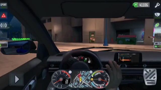 Играю в симулятор такси: вид от первого лица.