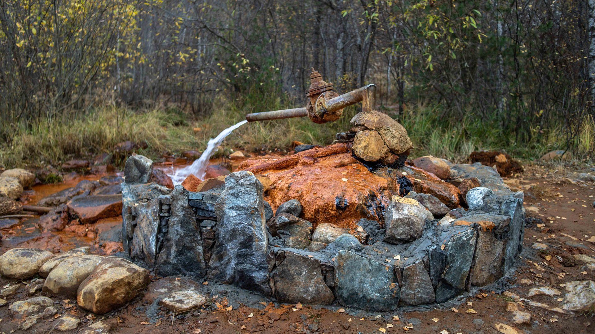 Источников здесь несколько, вода в них разной степени насыщенности, но по вкусу примерно одинаковая. Это отличная минеральная водичка с ярко выраженным привкусом железа и сероводорода.
