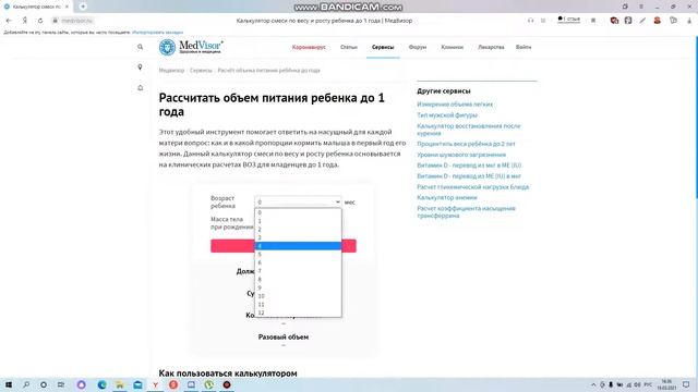 Этот удобный инструмент помогает ответить на насущный для каждой матери вопрос: как и в какой пропорции кормить малыша в первый год его жизни. Данный калькулятор смеси по весу и росту ребенка основывается на клинических расчетах ВОЗ для младенцев до 1 года. Чтобы результаты были корректными, вбейте точные параметры в соответствующие строки: Текущий возраст ребенка (месяцы); Масса тела при рождении (в граммах). В качестве результатов появятся следующие параметры: Долженствующая масса тела – норма для возраста ребенка в соответствии с параметрами ВОЗ (в граммах); Суточный объем пищи – общий объем еды, который требуется ребенку на данный момент (в граммах); Количество кормлений – сколько раз в день требуется в среднем кормить ребенка; Разовый объем – количество еды, которые требуется давать за один прием пищи (в мл). https://medvisor.ru/services/raschet-obema-pitaniya-detey/ Источник изображения: jcomp/Freepik