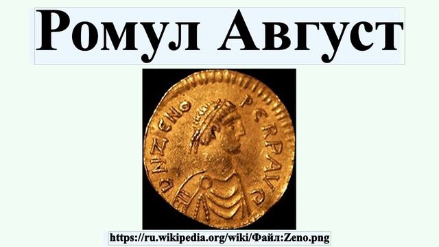 Ромул Август Фла́вий Ро́мул А́вгуст , прозванный Ромул Августул и Момиллус , более известный в римской историографии как Ро́мул Авгу́ст, — последний император Западной Римской империи, правивший в 475—476 годах.Ромул, отличавшийся только своей красотой, был возведён на престол в юношеском возрасте своим отцом, военачальником Орестом, который сверг императора Юлия Непота.Однако его притязания на престол не были признаны ни галльским наместником Сиагрием, ни правителем Восточной Римской империей, ни отправившимся править в Далмацию Непотом.За малолетнего императора правил его отец. Вы можете поддержать нас, покупая игры через эти ссылки, спасибо :) G2A: https://www.g2a.com/r/13b5d Instant Gaming: http://www.instant-gaming.com/en/igr2398139/ ---------Информация об изображении авторских прав---------- Профиль автора: Tremissis-Zeno-RIC 0914.jpg: Classical Numismatic Group, Inc. http://www.cngcoins.com derivative work: Original uploader was Michaelsanders at en.wikipedia лицензия: Creative Commons Attribution-Share Alike 3.0 (CC-BY-SA-3.0) ссылка лицензия: http://creativecommons.org/licenses/by-sa/3.0/ автор: Michaelsanders (https://en.wikipedia.org/wiki/User:Michaelsanders) ❂видео ориентированы на слепых пользователей ❂Текст доступен по CC-BY-SA ❂источник изображения внутри видео