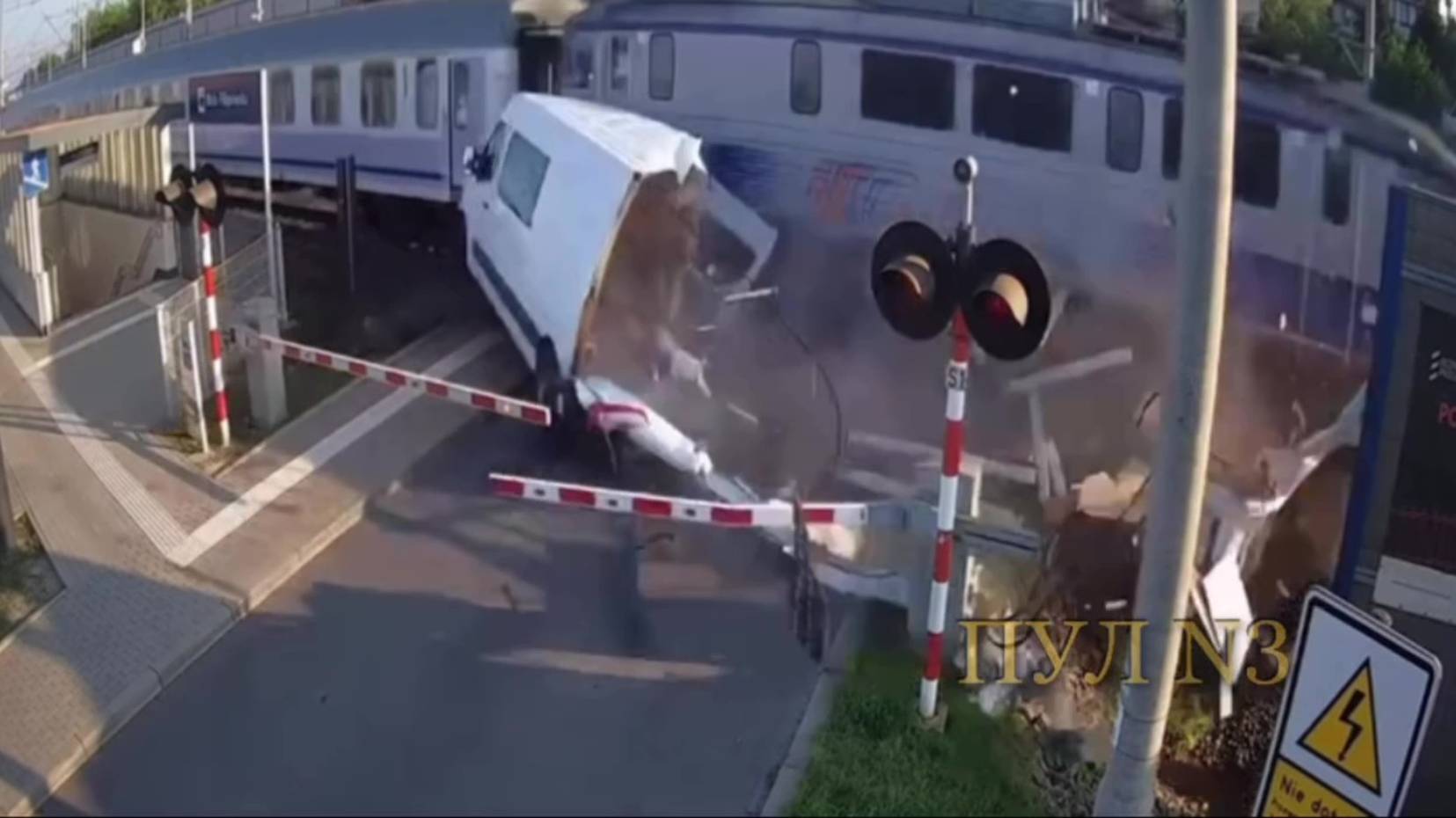 В Польше поезд протаранил машину – водитель оказался в ловушке.