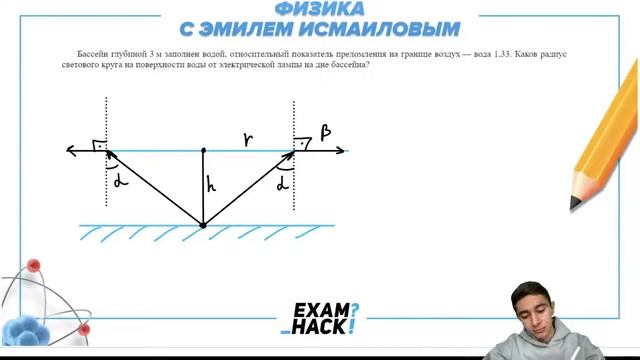 Бассейн глубиной 3 м заполнен водой, относительный показатель преломления на границе воздух - №30964