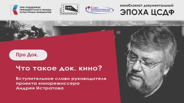 Итак, что же такое документальное кино? Тот самый ДОК., который, по мнению многих, сейчас как раз «на подъеме»? В вопросе попробовал разобраться руководитель проекта «Киноблокнот документальный: Эпоха ЦСДФ» кинорежиссер Андрей Истратов. Андрей Истратов - кинорежиссёр, сценарист документального и научно-популярного кино, продюсер, член Союза Кинематографистов России, член Гильдии Кинорежиссеров России, член Российского военно-исторического общества. Создатель более 400 телепрограмм цикла "Легенды мирового кино". Руководитель лектория "Школа умного кино". Лауреат ряда российских и международных кинофестивалей. Номинант кинопремии "Ника" за 2022-23 года, номинант кинопремии "Золотой Орел" за 2023 год.