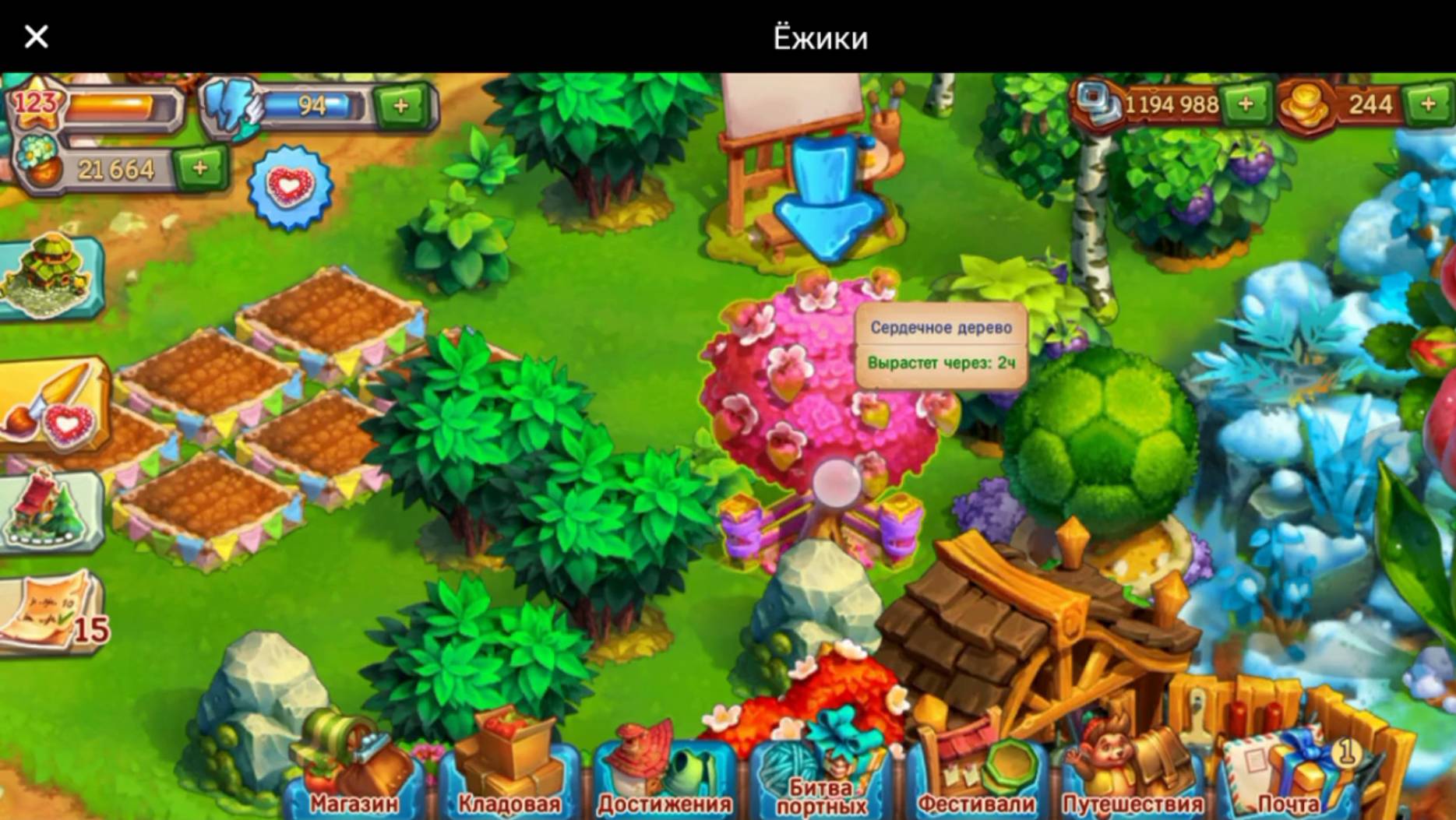 Опять видео с телефона. Увы, некоторые моменты видео (например, с начала и до 1:22) пришлось восстанавливать, и это заметно 🙄. Ёжик обменивался с Енотом (Енот Ёжику золотую ваниль, а Ёжик ему мороженое), получал новые уровни праздничного фестиваля (дошел до 7 праздничного уровня), купил сердечное дерево (дает урожай быстрее, чем карамельные розы 😁 ). А еще начинает делать кисти, чтобы начать рисовать портрет, и загадывает несколько желаний у Волшебного колодца.