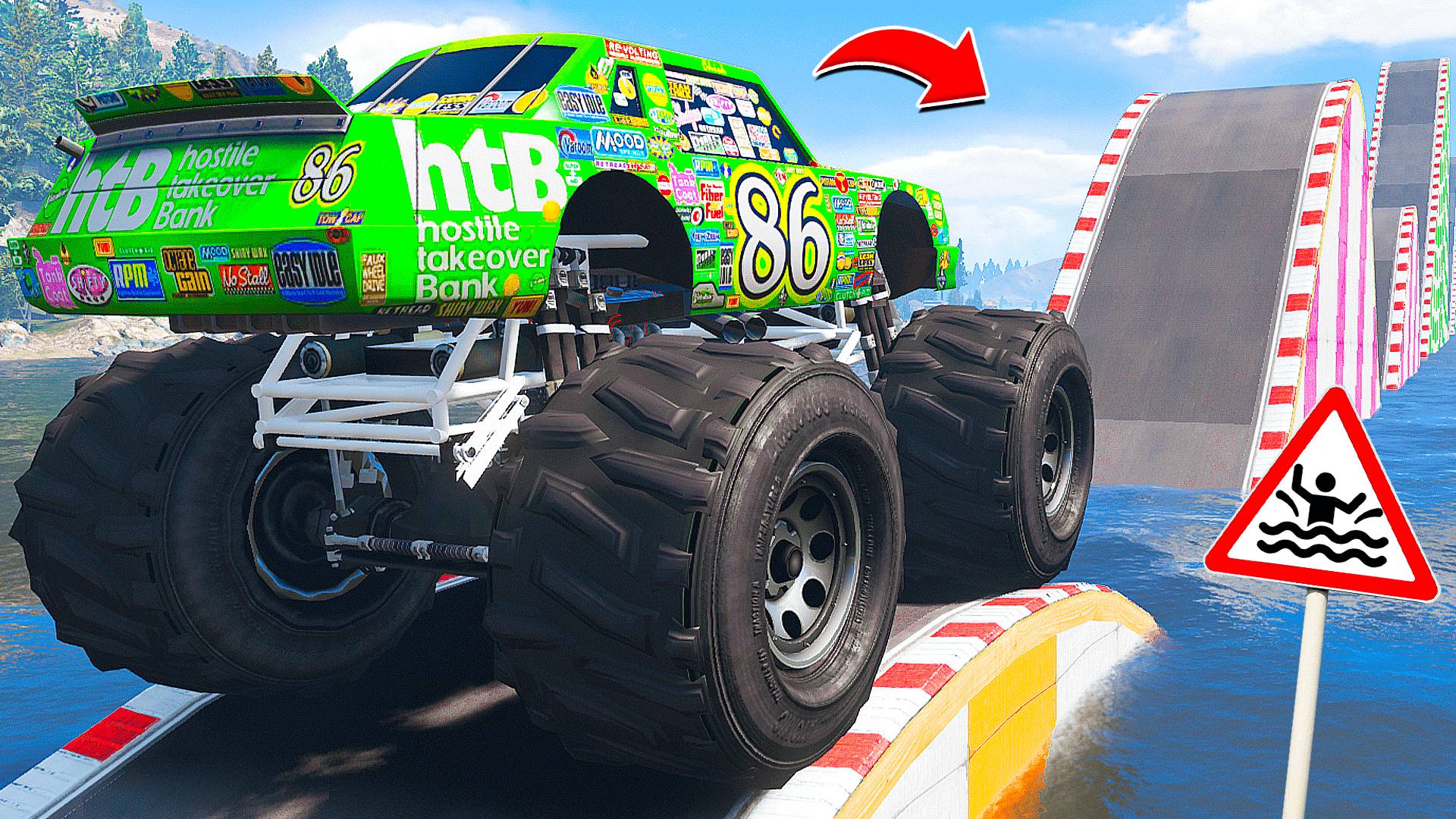 ПРОЕХАЛ ВОДНЫЕ ТРАМПЛИНЫ на ГИГАНТСКОМ ЧИКО ХИКС в ГТА 5 МОДЫ - ЭКСПЕРИМЕНТЫ в GTA 5 MODS