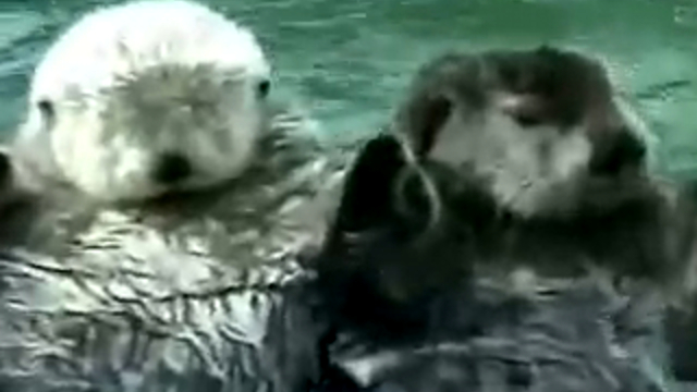 Выдры держат друг друга за лапы