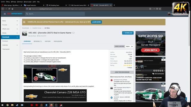 Top mod avec ce superbe tracé du Willow Springs et la Chevrolet Camaro IMSA GTO Ici les liens https://www.racedepartment.com/downloads/willow-springs-big-willow.32338/updates https://www.vrc-modding-team.net/show/26 https://www.racedepartment.com/downloads/vrc-arc-chevrette-28gto-real-in-game-name.29780/ https://translate.google.com/translate?hl=fr&sl=en&u=https://en.wikipedia.org/wiki/Willow_Springs_International_Motorsports_Park&prev=search N’hésitez pas à laisser vos commentaires !!! Si vous aimez cette vidéo, alors merci de là partager !!! NOUVEAU PAGE FACEBOOK - REJOIGNIEZ MOI ET PARTAGER VOTRE PASSION POUR LA SIMULATION !!! https://www.facebook.com/christophe.homed ➜ ABONNEZ-VOUS : http://www.youtube.com/c/HomedRacing ➜ METTEZ UN POUCE BLEU SI VOUS AIMEZ CETTE VIDEO !!! ➜ MON SETUP 2019 : https://youtu.be/KWsfXvKztIU Rejoigniez mon serveur Discord pour participer à des sessions vocales ou textuelles lors des sessions en Live !!! https://discord.gg/Ce53R7S Bienvenue sur ma chaine ! Je partage ici plusieurs passions comme : - Le monde du jeu mais surtout la passion du monde de la simulation de course. - La passion pour le drone sur toutes ses coutures - Des tutos à gogo, des unboxing et tests matériels - Du gameplay, des sessions en live etc... - Une bonne humeur et surtout une entraide entre passionnés. Mais surtout de partager mes passions avec vous et d'échanger des avis et commentaires. Et le plus important prendre du plaisir !!! Présentation de mon matériel Ordinateur : Boitier Be Quiet Silent Base 800 Carte Mère MSI Z270 Gaming M5 Processeur Intel Core i7 7700K NVIDIA GeForce GTX 1080 Ti 11 Go G.Skill DIMM DDR4 32 Go 3 ecran 27'' Iiyama prolite xb2783hsu-b1 Clavier Logitech G810 Orion Spectrum - Romer-G Cockpit et accessoires : Système JCL to be faster noir Support Triplescreen JCL Direct Drive Augury OSW Simcube Pedalier Heusinkveld Pro Fanatec Clubsport Shifter SRH Tach Stand Indicateur rapport SRH GI-Max v2 Compteur vitesse SRH SPI-D v2