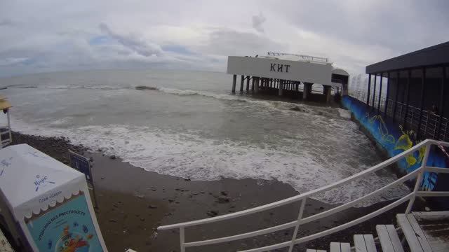Лето в Сочи пока всё:залитая набережная, сильно похолодало, шторм продолжается