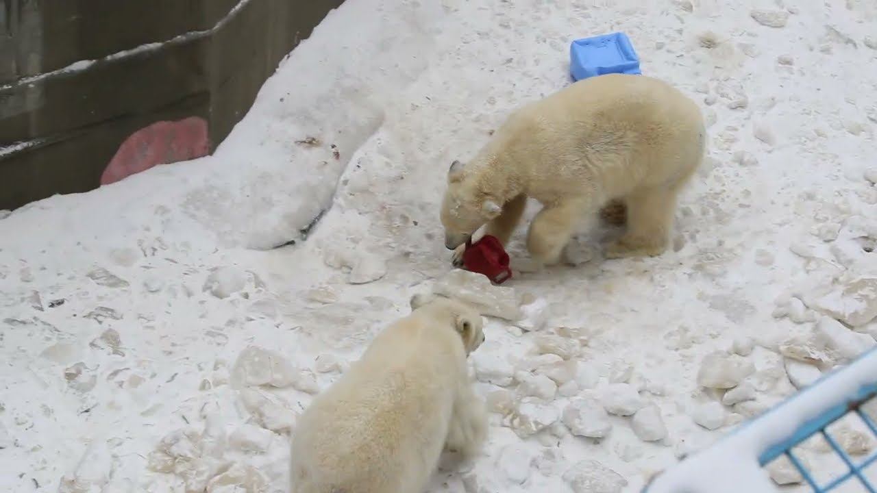 Герда родилась в Москве 20 ноября 2007 года. Её мама Симона, папа Врангель. В Новосибирск переехала 05.08.2008. В 2013 году у Герды и Кая родилась Шилка. В 2015 году она переехала в Японию. В 2015 году родился Ростик. 6 декабря 2018 года он переехал в Китай. В 2018 году родились Норди и Шайна. Данная пара молодых медведей находилась вне экспозиции зоопарка, поэтому посетители не могли их видеть. Передача молодых медведей в другой зоопарк не планируется, — ответили на запрос редакции в пресс-центре мэрии Новосибирска. Но Шайна 20 января 2024 года переехала в Ижевский зоопарк. Белые медведи одиночные животные. Как правило, миролюбивы по отношению друг к другу, но между самцами в брачный период случаются стычки. Взрослые самцы могут нападать на медвежат. Гон с марта по июнь. Продолжительность жизни — максимум 25—30 лет; в неволе рекорд долгожительства — 42 года. Вес очень крупных самцов в некоторых частях ареала 700 и даже 800 кг: есть данные о зверях весом до 1000 кг. Обычно вес меньше. Самки всегда не только меньше, но и значительно легче самцов. Так, самцы в восточной Гренландии в состоянии нормальной упитанности весят 400—450 кг, хорошо упитанные — до 500 кг, самки, даже очень сытые, здесь же редко весят больше 350—380 кг, т. е. их вес составляет около 75% веса самцов. Длина тела на 3-й день после рождения 28—32 см, средний вес — около 755 г (650—840 г). На 26-й день длина тела увеличивается незначительно — до 35—38 см, а вес возрастает до 1125—1275 г. В возрасте 60 дней самцы весят около 7 кг, самки — около 6 кг при длине тела у первых 58—60 см, у вторых 54—58 см. В возрасте 4 месяца медвежата достигают веса 22—23 кг, в 6-месячном возрасте при длине около 110 см — 40—43 кг, в 8-месячном — 58—62 кг. Длина тела в возрасте с 6 до 9 месяцев нарастает по 6—7 см в месяц. Во время зимнего сна рост почти прекращается. В зоопарке медведей кормят утром морской рыбой, хлеб с рыбьим жиром внутри, морковь, яблоки, морская капуста, яйцо дают сырое. Медвежат подкармливают молоком из соски. На ужин мясо (говядина, конина, куры или индейка). Летом и осенью арбузы, дыни, ранетки, кабачки, тыквы, огурцы. Когда показательное кормление летом бросают живую рыбу. Медвежата с медведицей находятся до 2-х лет. 16 декабря 2022 года Герда родила 2-х медвежат. И это две девочки! Имена дали 25 июня. Медвежат зовут Стрелка и Белка. Обзор вольеров белых медведей https://www.youtube.com/watch?v=mAt_b7JD0B4&list=PLGvf0V-rAHxkpGKJaWIZIUxRKgKiqV3xZ&index=17&t=0s